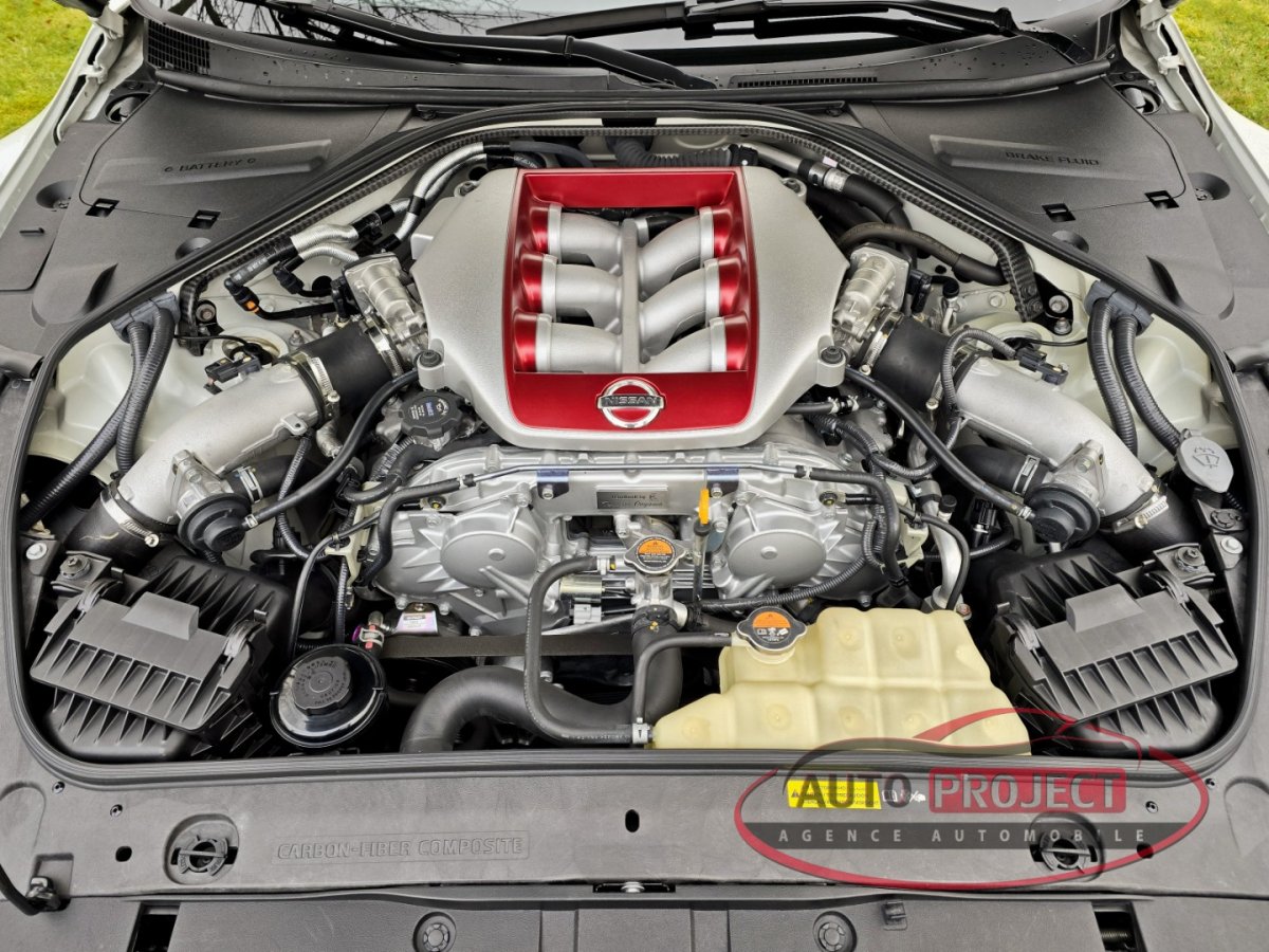 NISSAN GT-R R35 3.8 V6 550 BLACK EDITION - 30 Mars 2015 - Essence - 550 Ch. DIN - 632 N.m - 47 Ch. fiscaux - Boîte robotisée 6 vitesses GR6 - Transmission intégrale ATTESA ET-S - 32 500 kms - Blanc nacré (PEARL WHITE) - 2 portes - Châssis spécifique adaptatif GT-R - Jantes en alliage forgées 20 pouces RAYS - Intérieur ambiance noire - 4 places assises - Sellerie électrique et chauffante en cuir lisse et perforé noir et cuir perforé rouge avec surpiqûres grises - Inserts décoratifs en véritable carbone