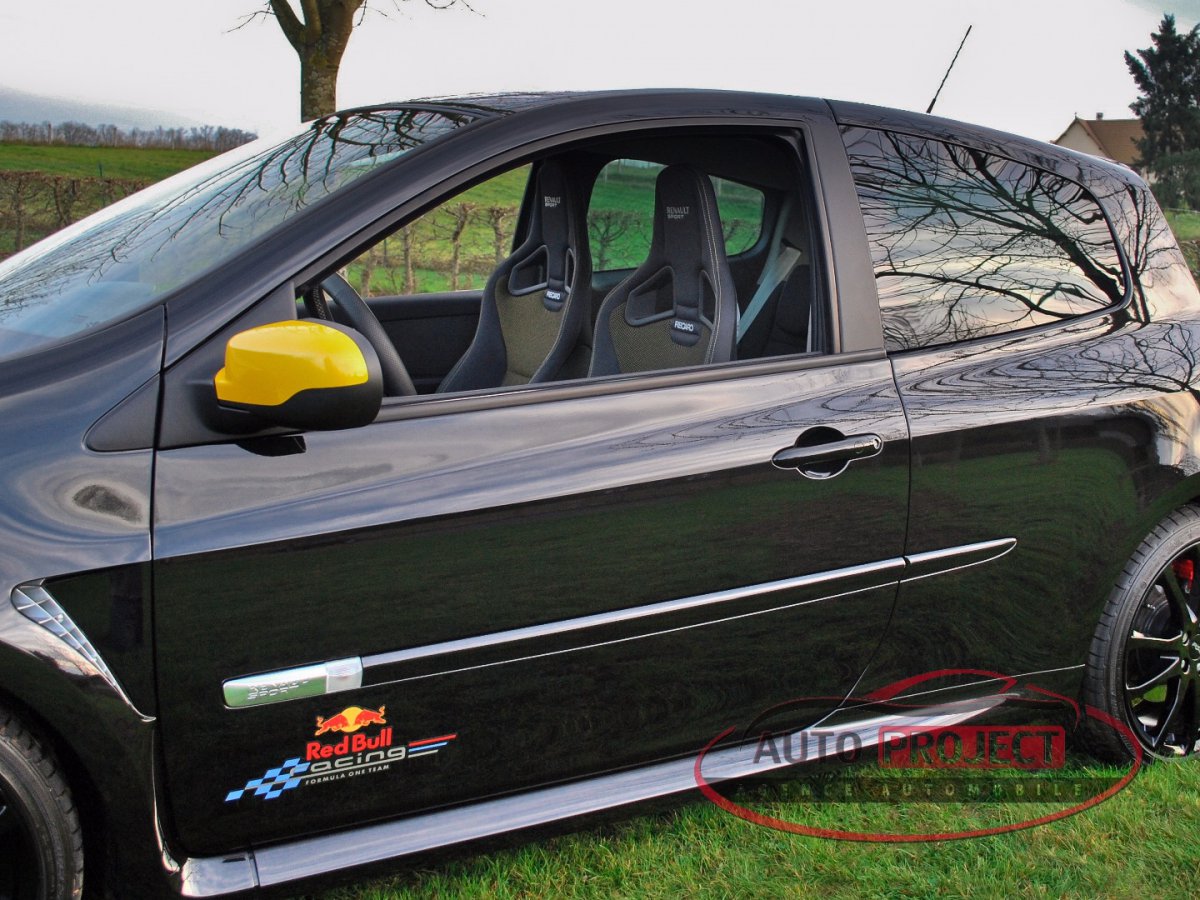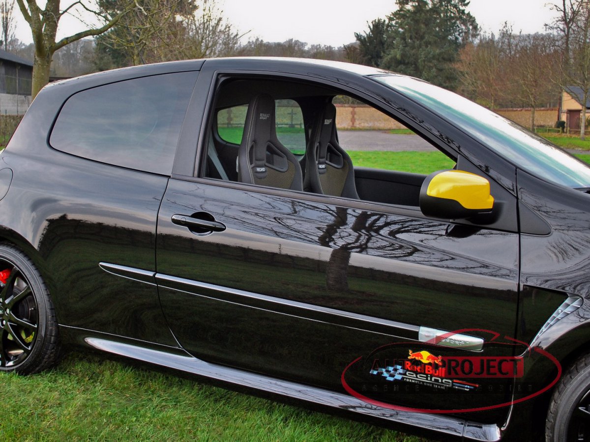 RENAULT CLIO III 2.0 16V 203 RS RED BULL RACING RB7 N°296 - 20 Septembre 2012 - Essence - 203 Ch. DIN - 215 N.m - 12 Ch. fiscaux - Boîte 6 vitesses manuelles - Traction - 7 500 kms - Noir métallisé (NOIR ETOILE) - 3 portes - Châssis sport CUP - Jantes alliage 18 pouces INTERLAGOS - Intérieur ambiance noire - 4 places assises - Sellerie en tissu bicolore noir et jaune avec surpiqûres jaunes - Inserts décoratifs en gris vernis