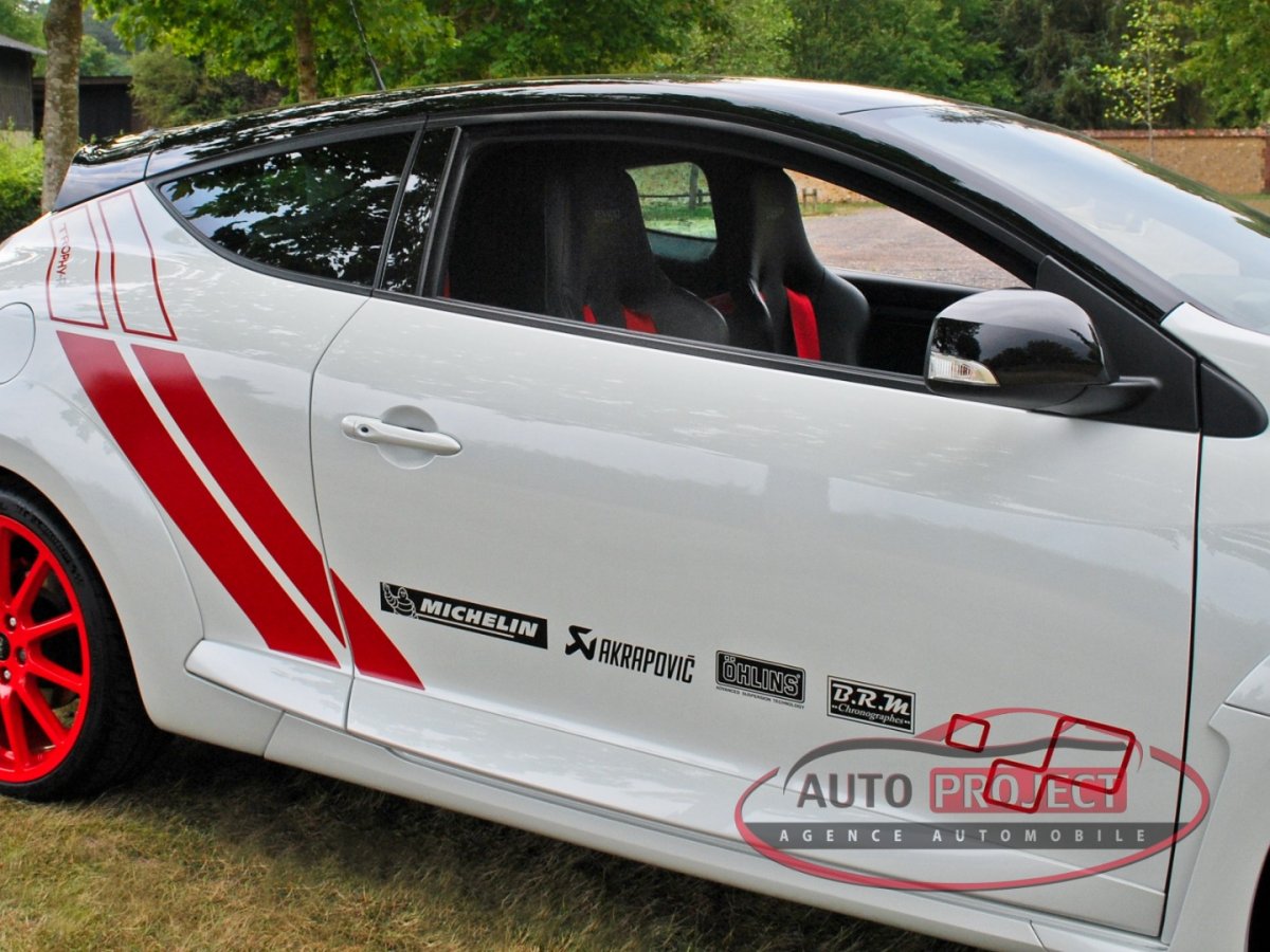 RENAULT MEGANE III COUPE 2.0 TURBO 275 RS TROPHY-R N°068 - 22 Octobre 2014 - Essence - 275 Ch. DIN - 360 N.m - 17 Ch. fiscaux - Boîte 6 vitesses manuelles - Traction - 43 500 kms - Blanc nacré + Noir métallisé (BLANC NACRE + NOIR ETOILE) - 3 portes - Châssis sport CUP - Jantes alliage 19 pouces TURINI rouges - Intérieur ambiance noire - 2 places assises - Sellerie en semi-cuir noir et alcantara noir avec surpiqûres rouges - Inserts décoratifs en imitation carbone